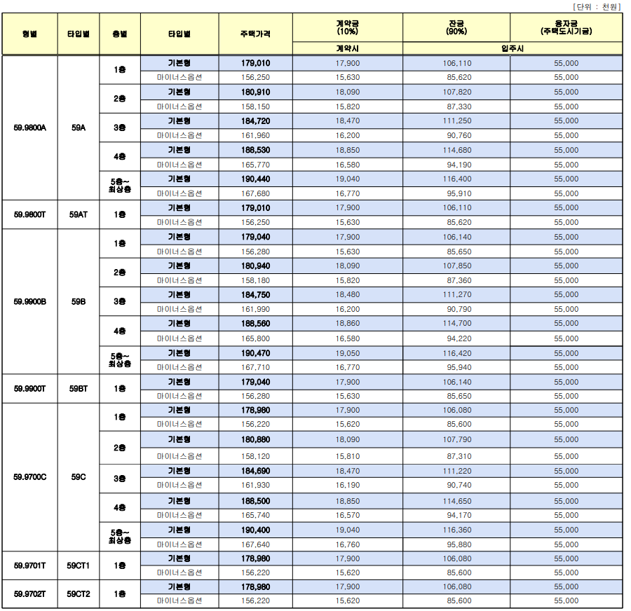 ❚ 평수별 공급가액