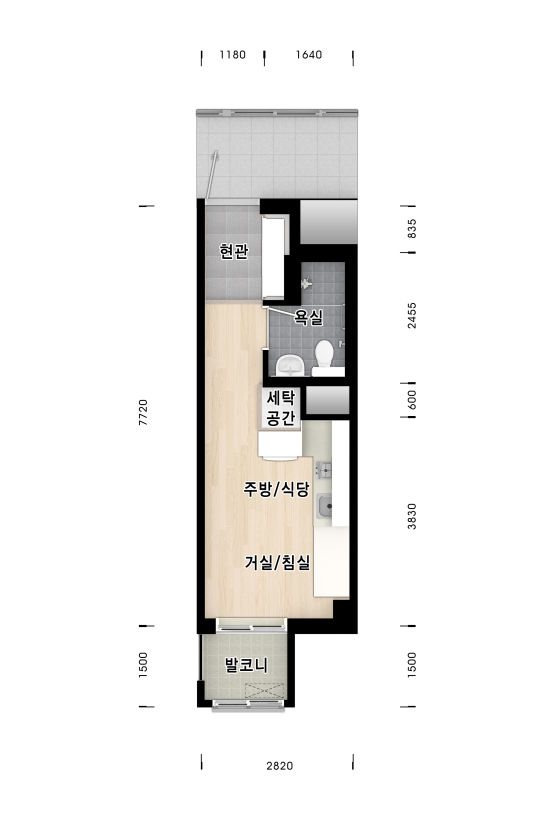 • 17㎡형 주택에는 식탁겸용 책상, 냉장고, 가스쿡탑 등 빌트인 가구 및 가전제품이 설치됩니다.