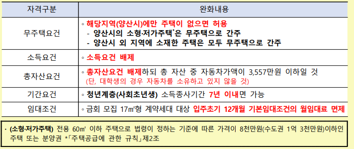 • 양산물금2 행복주택은 입주자모집공고일(2022.07.13) 현재 다음 중 하나에 해당하는 사람에게 공급됩니다.