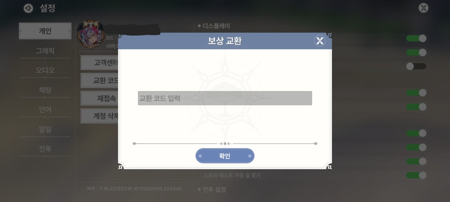 <설정-교환코드-입력>