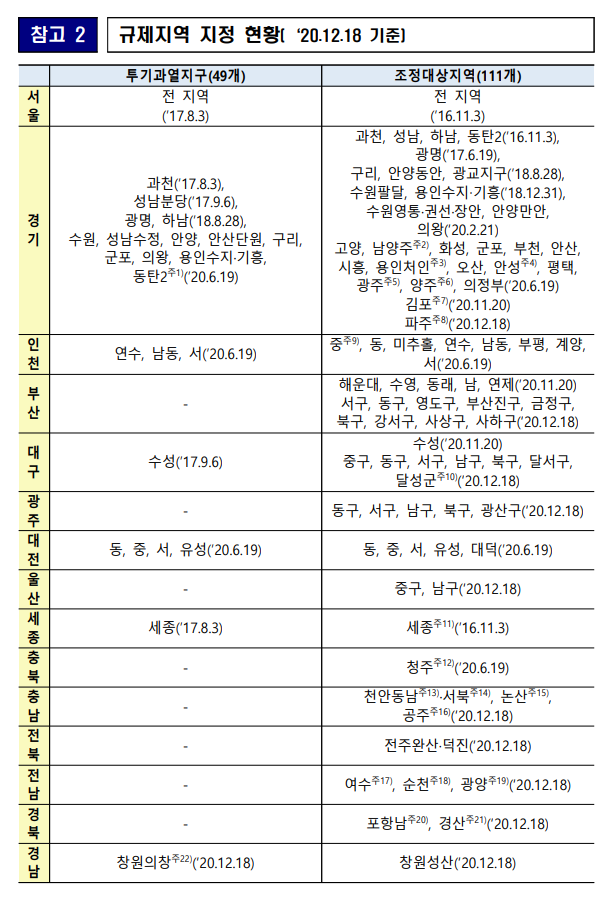 [부동산] 전국 부동산 조정대상지역 추가!!! 조정지역 부산 대구 광주 울산 경기도 등 36곳!!! (2020.12.18 지정)