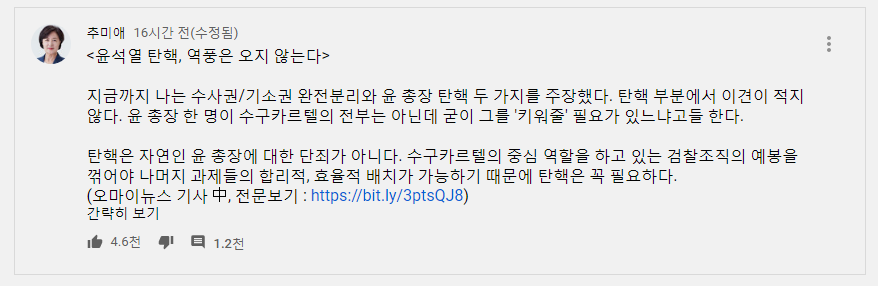 아래는 추미애TV 링크 입니다.