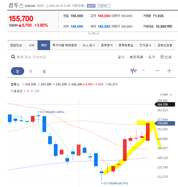 몇일전 눌림목이라고 판단했던게 맞아 떨어진것이다.