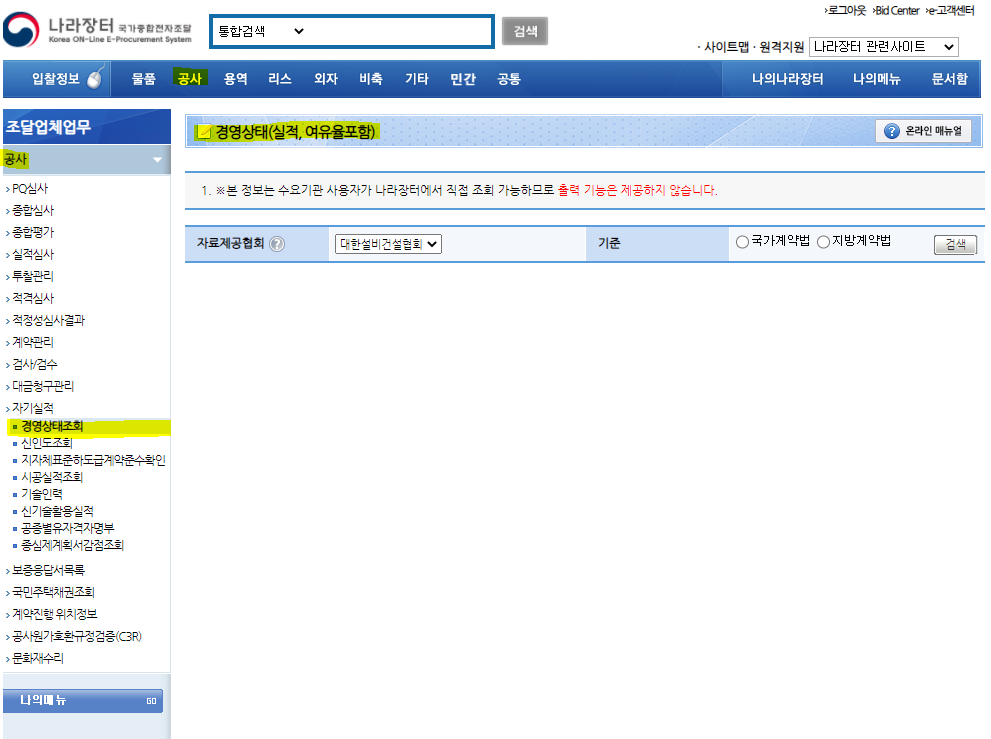 [업무] 경영상태 확인서 조회 및 발급방법 (나라장터, 대한기계설비건설협회)