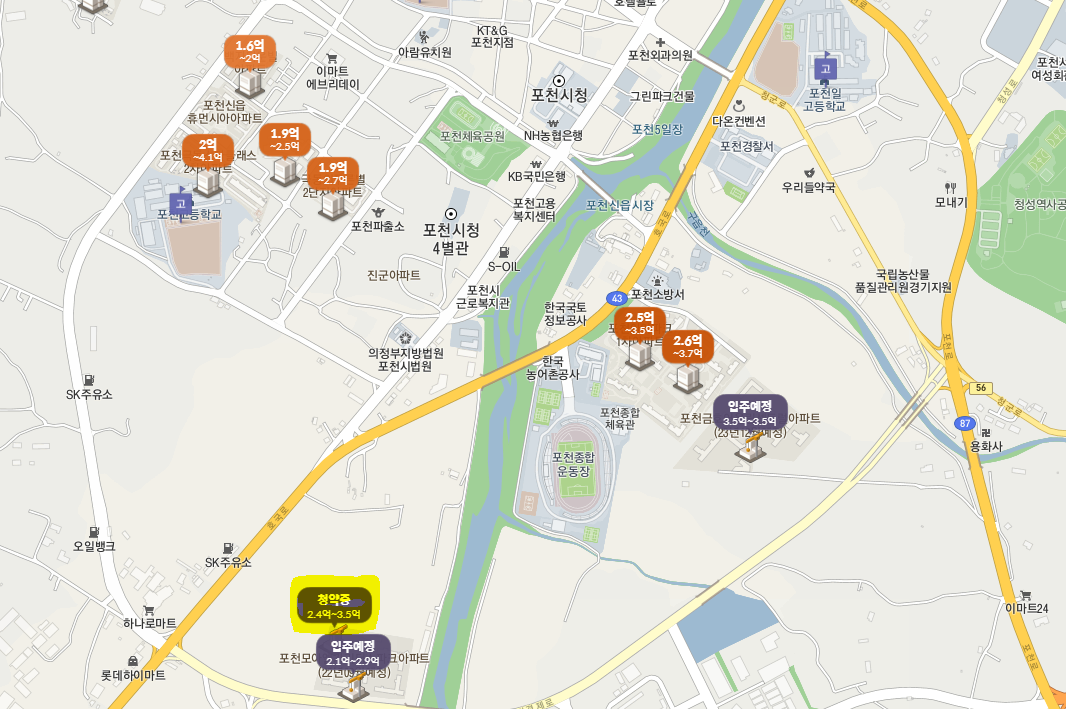 마트 및 포천시 종합운동장, 포천시청 등의
