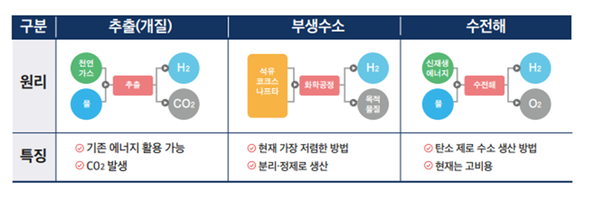 부질수소란 ? 석유화학 공정이나 철강등을 만들때 발생하는 부산물에서 나오는 수소를 의미합니다.