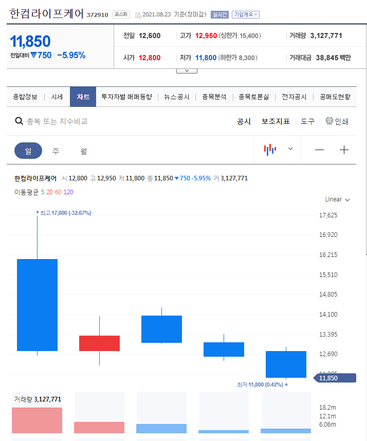 지금은 핫한 다른 공모주와의 추세와는 다르게 공모가 이하로 내려가