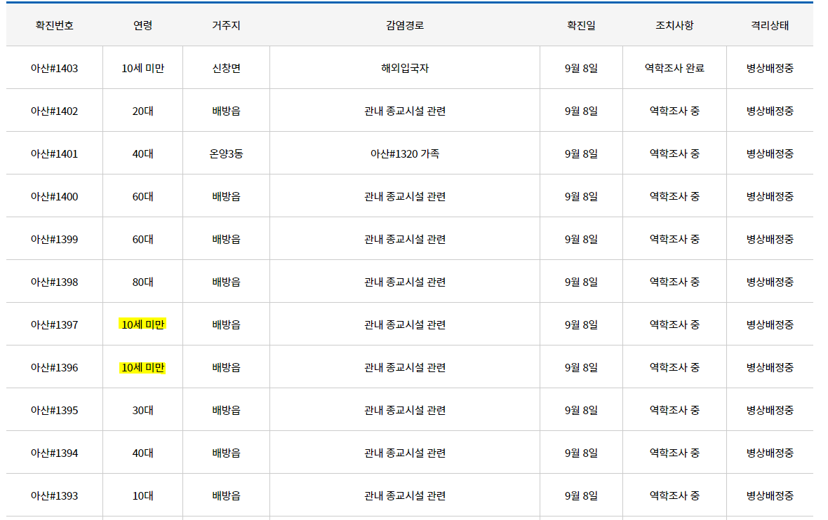 확진자 중에는 10세 미만도 있네요 우야꼬...