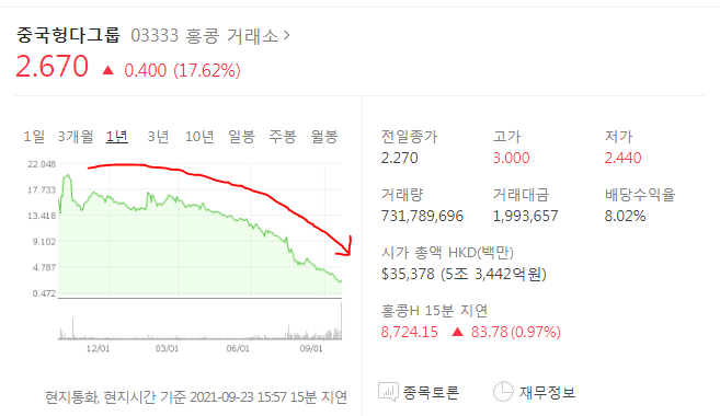 헝다그룹(EVERGRANDE GROUP) 의 파산설이 돌고 있습니다.