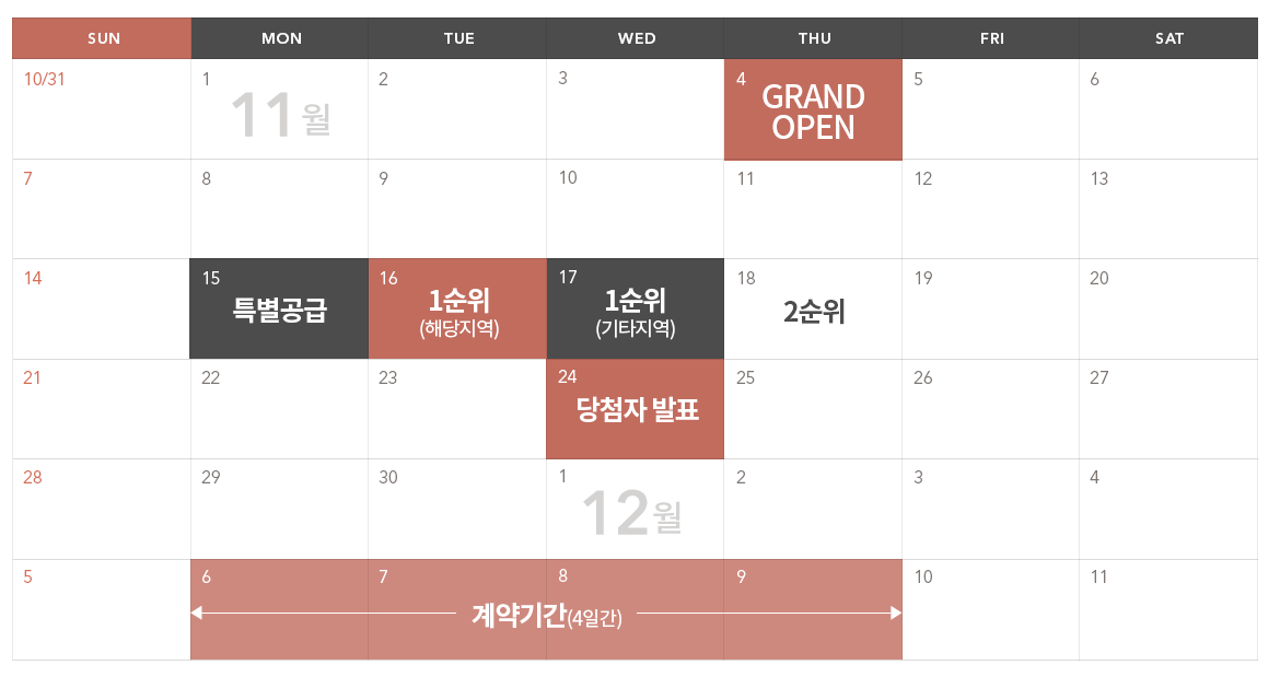 11월15일 특별공급을 시작으로 / 11월16일 1순위(해당지역)....에서 마무리 될 겁니다.....