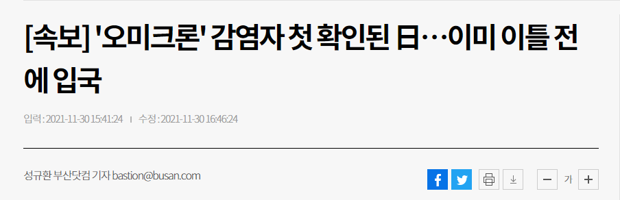 [뉴스] 울산 코로나 확진자 2명, 오미크론 변이 분석중 (네델란드,독일에서 입국) / 일본 오미크론 확진자 확인