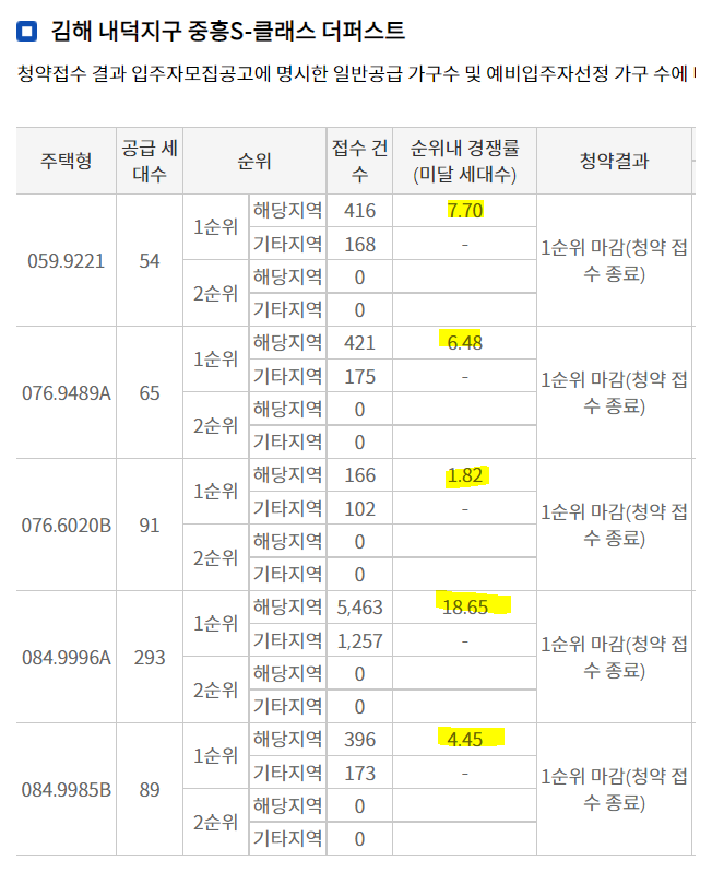 그리고 모든지역 해당지역 김해 1년 이상 거주자에게 1순위 당첨의 기회가 돌아갔네요.
