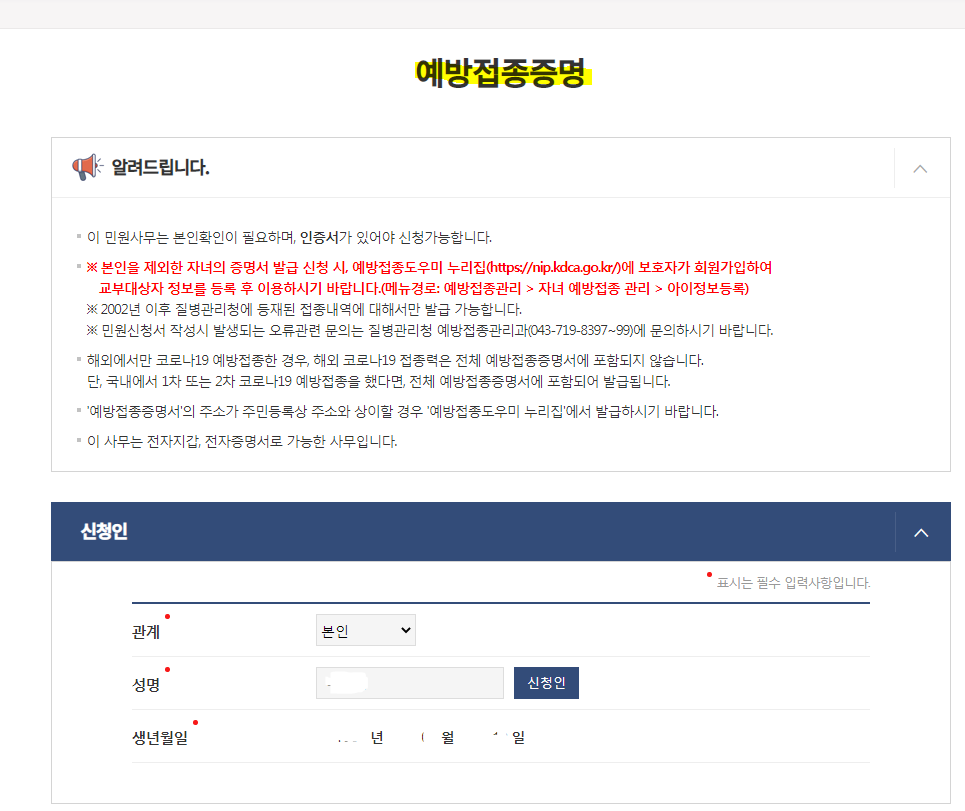 정부24 이외에도 '질병관리청 예방접종도우미' 에서도 출력이 가능한데 질병관리청에 별도의 가입을 반드시 해야 되고 많이 안쓰는 사이트라서 번거로움이 있습니다.