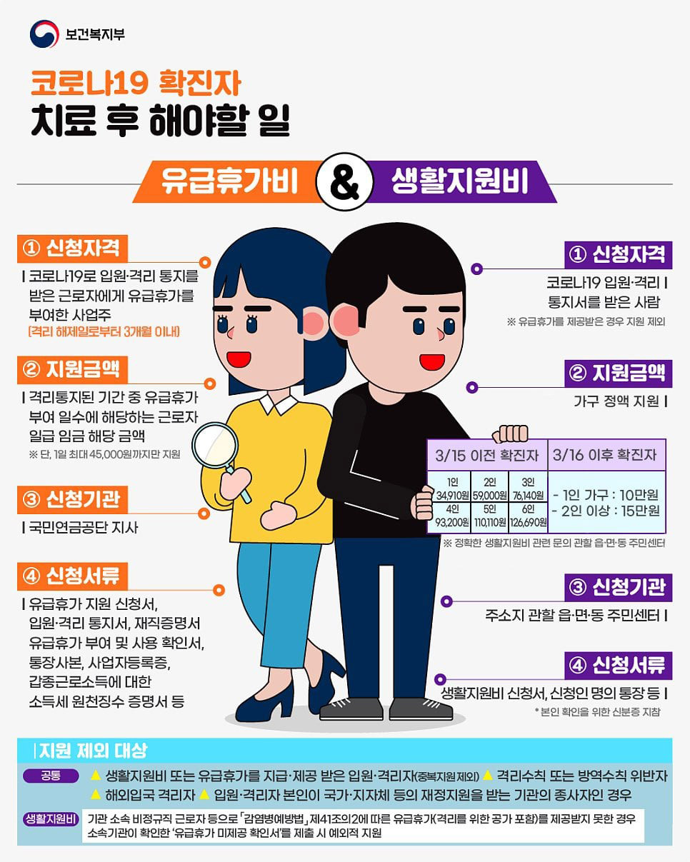 (3월16일부터 1인당 10만원 고정, 2인이상 확진시 15만원 고정)
