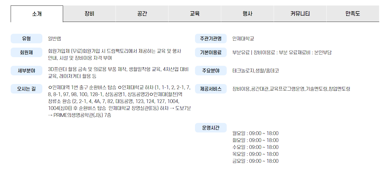 이상으로 김해에 있는 메이스메이커인 인제대학교 드림팩토리 소개였습니다.