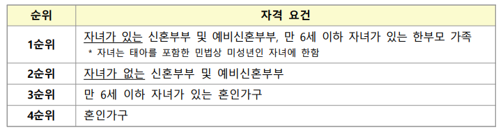 ② 예비신혼부부 : 공고일 현재 혼인 예정인 사람으로서 입주일 전일까지 혼인신고를 하는 사람