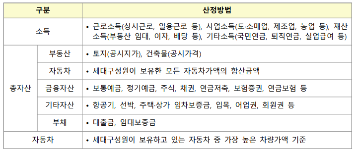※ 소득·자산 산정방법에 대한 자세한 사항은 공고문 하단 첨부물 참조