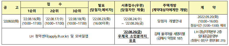 • 2순위 : 입주자모집공고일 현재 해당 주택건설지역(김해시) 외에 거주하는 무주택세대구성원
