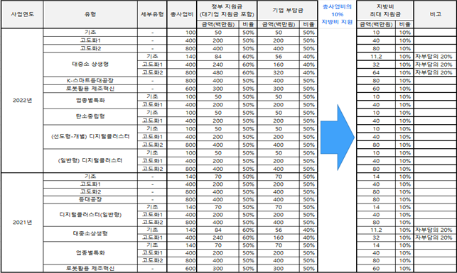 - 대상자 : 2021년 스마트공장 보급확산사업 협약 완료 기업