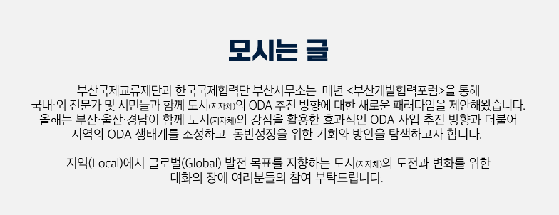 ㅇ 공동주관 : 부산국제교류재단, 한국국제협력단