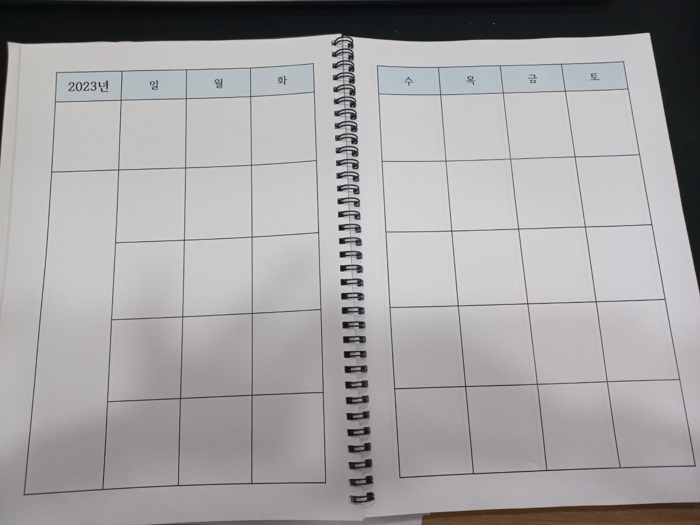 저는 아무 양식도 안넣었어요~ 일반적으로 년도와 요일만 적어서 양식으로 프린트했구요.