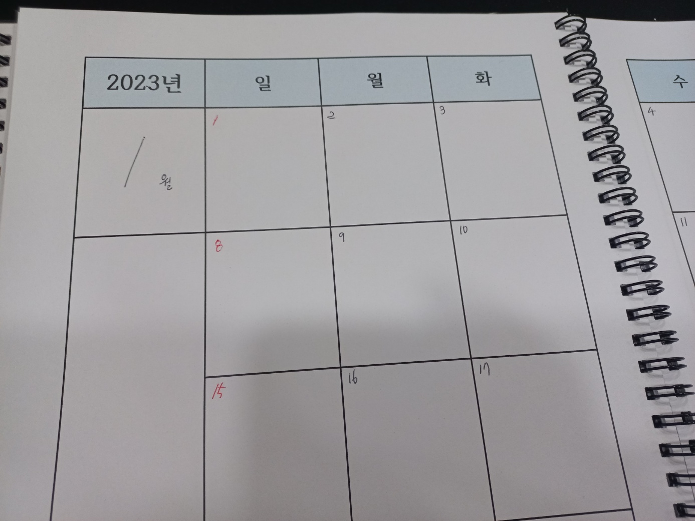 그리고 나머지는 검은색으로 적어서 플래너를 작성합니다.