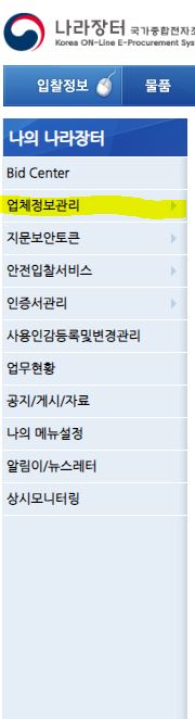 업체정보, 기업인증, 공급물품 등 입찰에 관련된 등록된 정보들이 모두 보이실텐데요.
