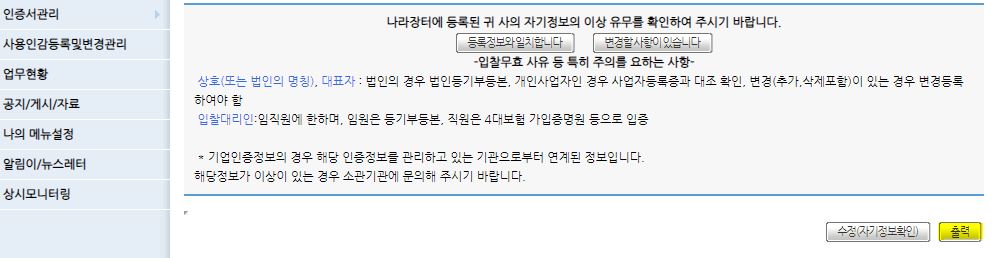 * 바이오 인증(지문) : 입찰대리인 등록 방법은 한번 포스팅 하도록 하겠습니다. =)