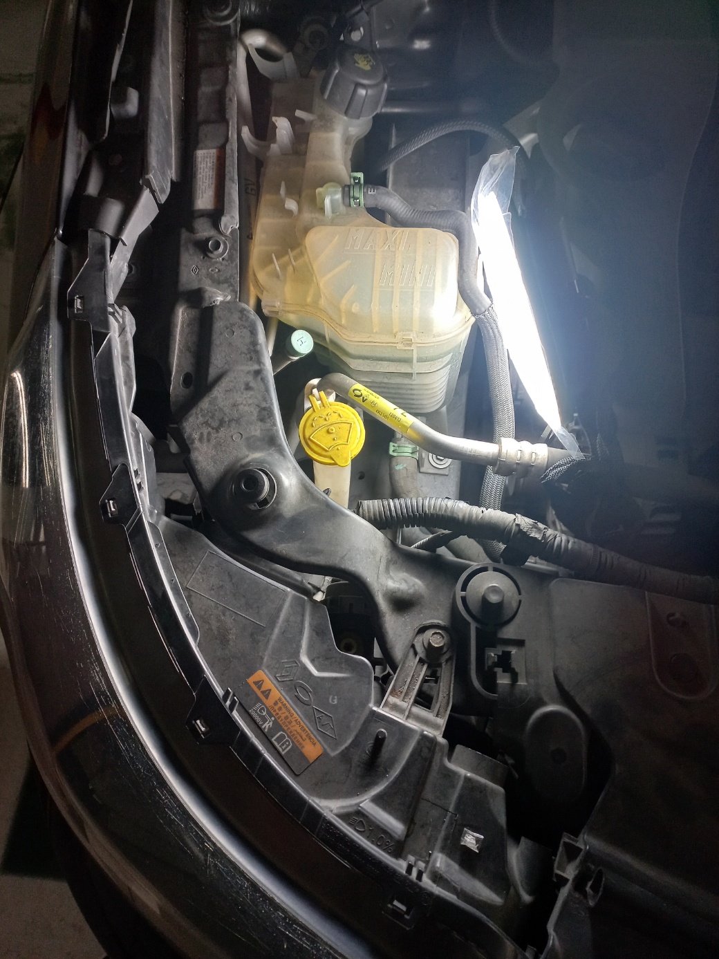 다시 딱 레버까지 내려서 새로 장착한 전구 입니다. 저는 가성비 보고 제일 싼거 사서... 좀 더 나은 광량이나 밝기 원하시는분은 잘 찾아보고 구매하세요. 이제 원상복구 전조등 뚜껑닫고 워셔액 다시 달고 원상복구!!!!
